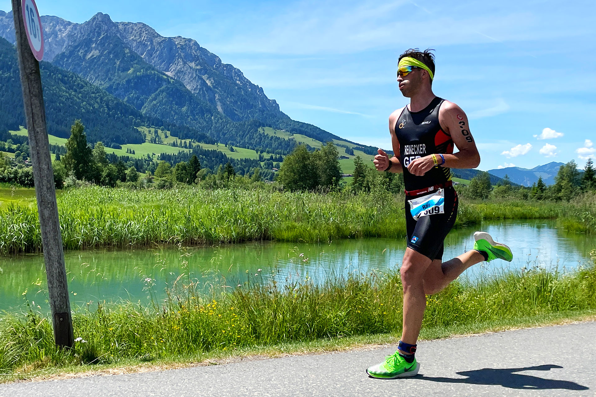 CHALLENGE WALCHSEE 2021 Frederic Funk krönt sich zum Europameister / Uneinholbar fliegt der deutsche Jungprofi über die Laufstrecke im malerischen Kaiserwinkl / Titel © Stefan Drexl / SUGAR & PAIN