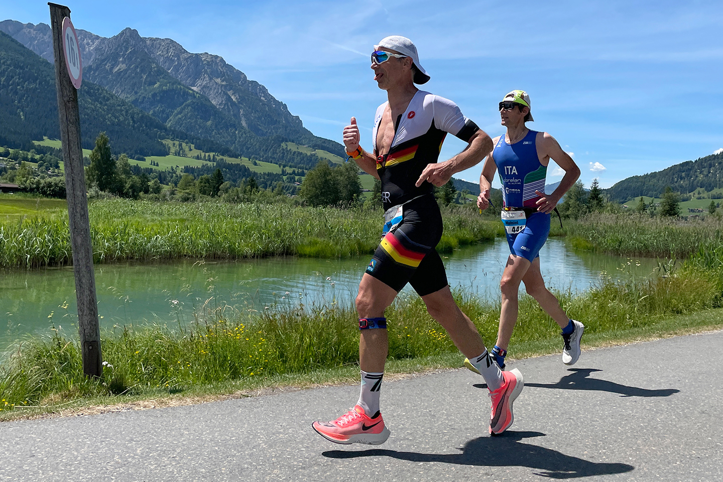 Zwanzig Kilometer vor dem Ziel war Zepuntke an Frederic Funk dran und so wechselten die zwei Triathleten gemeinsam auf die Halbmarathonstrecke. Der Vorsprung auf Molinari war groß, der auf den letzten Radkilometern noch einige Zeit verlor und mit mehr als drei Minuten Rückstand zu den Führenden auf die Laufstrecke startete. Thomas Steger, der schwach ins Rennen begonnen hatte, aber immer besser in Schwung kam, hatte zwischenzeitlich zur Aufholjagd geblasen und wechselte als Vierter in die Laufschuhe.